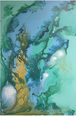 Carolyn Kreiter-Foronda: Because I frequently experiment, I find that this inclination informs both art forms. Just as I’ve been heavily influenced by the philosophical insights of Jackson Pollack and the abstract innovations of the Washington, D.C. painter, Sam Gilliam, I’ve been influenced by my former creative writing professors, Peter Klappert and Ai, whose dramatic monologues opened doors of exploration in my own poetry. Secondly, as an abstract colorist painter, I rely on colors to speak emotionally to viewers. As a writer, I interweave color into ekphrastic, or art-inspired poems, by carefully selecting words or syntactical arrangements that visually engage the reader. Another overlap that exists in my poetry and artwork emerged after studying Georgia O’Keeffe, who taught me to look closely at a subject to really see it. My paintings and poems zero in on a subject to offer my audience a close-up view. However, I seldom use my own artwork as an impetus for a poem. Nor does the overlap between the two arts ever frustrate me. I attribute this to the joy I derive from creating.
