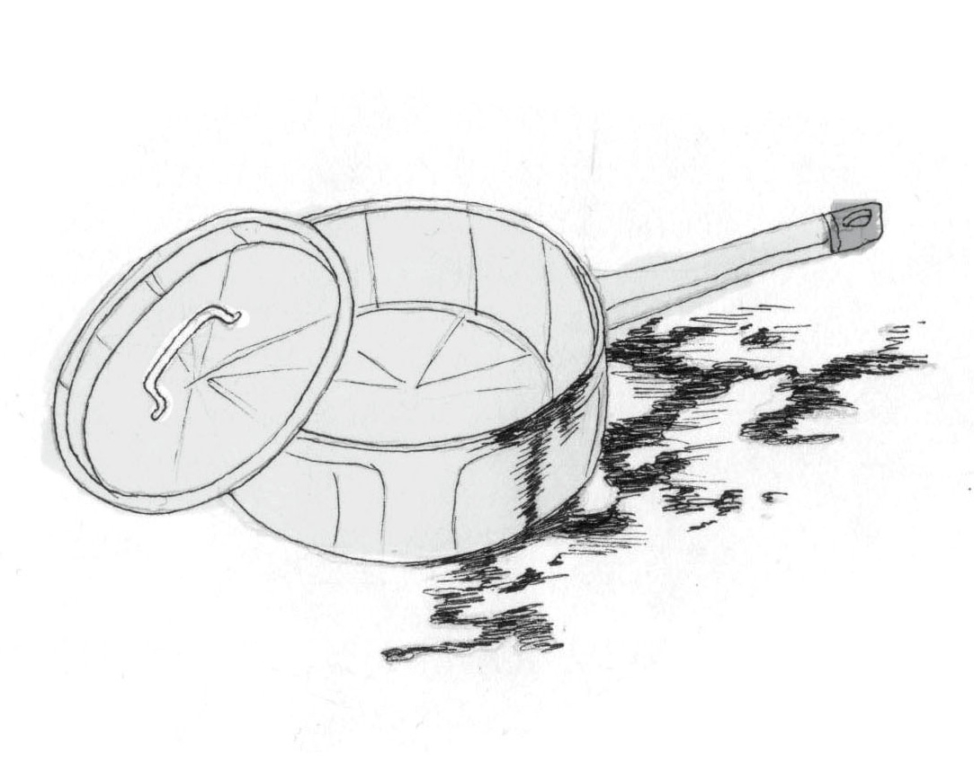 And now, Mala thought, she didn’t have a home, nor a saucepan in which to heat milk for the children’s cocoa. She had to use Saurav’s mother saucepan. To, which Saurav’s mother was saying, “I’ve told you so many times that we take out the new, stainless steel saucepan only when we have guests. What don’t you understand about that? Use this one for everyday, see, this one.” She took out the grey, aluminum saucepan with the crêpey Teflon interior and held it up.